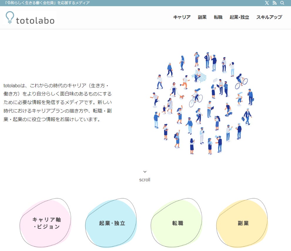 「令和らしく生きる働く会社員」を応援するメディア『totolabo』は、これからの時代のキャリア(生き方・働き方)をより自分らしく面白味のあるものにするために必要な情報を発信するWebメディアです。新しい時代におけるキャリアプランの描き方や、転職・副業・スキルアップに役立つ情報などを軸に情報を発信しています。